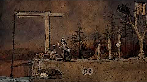 ※黒い動物が木の上に移動する - 左の装置(左側のギア)をクリック